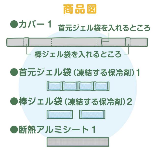 セット内容:カバー 1、首元 ジェル袋 1、棒ジェル袋 2、断熱アルミシート 1